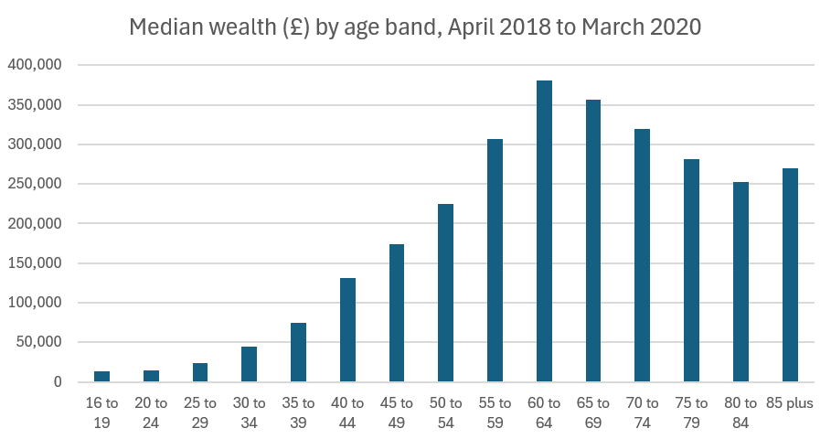 First, the ONS has some depressing statistics about the wealth distribution. At a very high-level, just 4 years ago in 2020 the median wealth was £302,500. However, as this number is for most of the population as a whole it’s not a great number to compare against depending on your age, and the younger you are the less well you’ll compare against it.