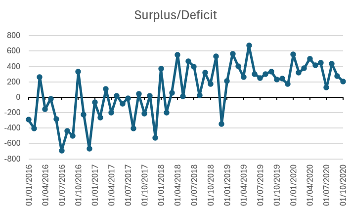 As with net worth, knowing where you stand with this metric allows you to take action to improve your surplus or reduce your deficit each month, which directly feeds into improving your net worth. It’s well worth adding this to your regular tracking. Let me know in the comments if you get any benefit from tracking your monthly income and expenses over time, or if you’ve got any different approaches. Thanks for reading.